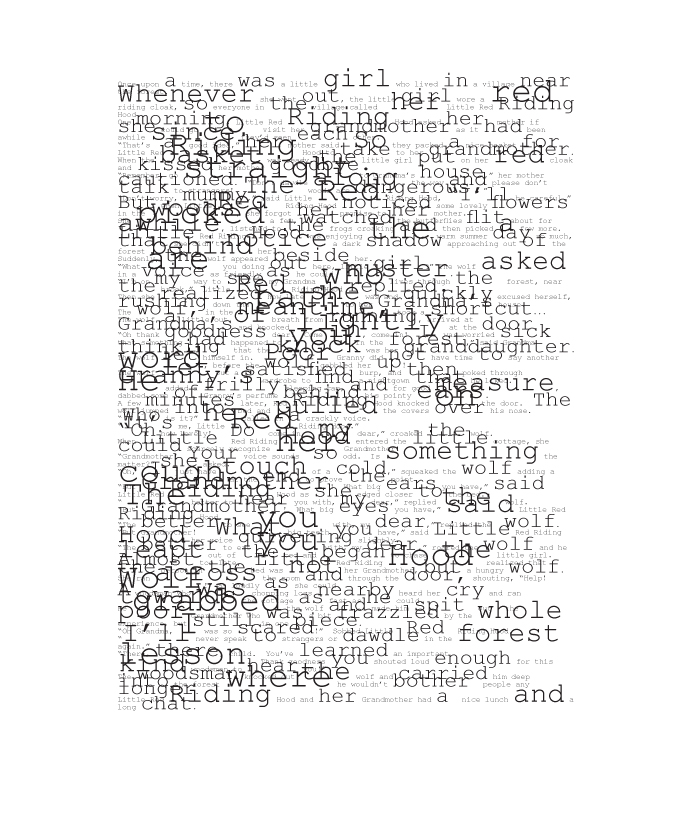 This will hopefully make people realise OCD should not be used as a casual, fashionable term to describe lesser ‘afflictions’. I have utilised the fairy tale “Little red riding hood” as this plays with notions of good and bad - often an underlying issue with OCD sufferers. My print pieces explore two OCD's -searching for “evil contaminations” in text and the belief that some numbers are better than others.